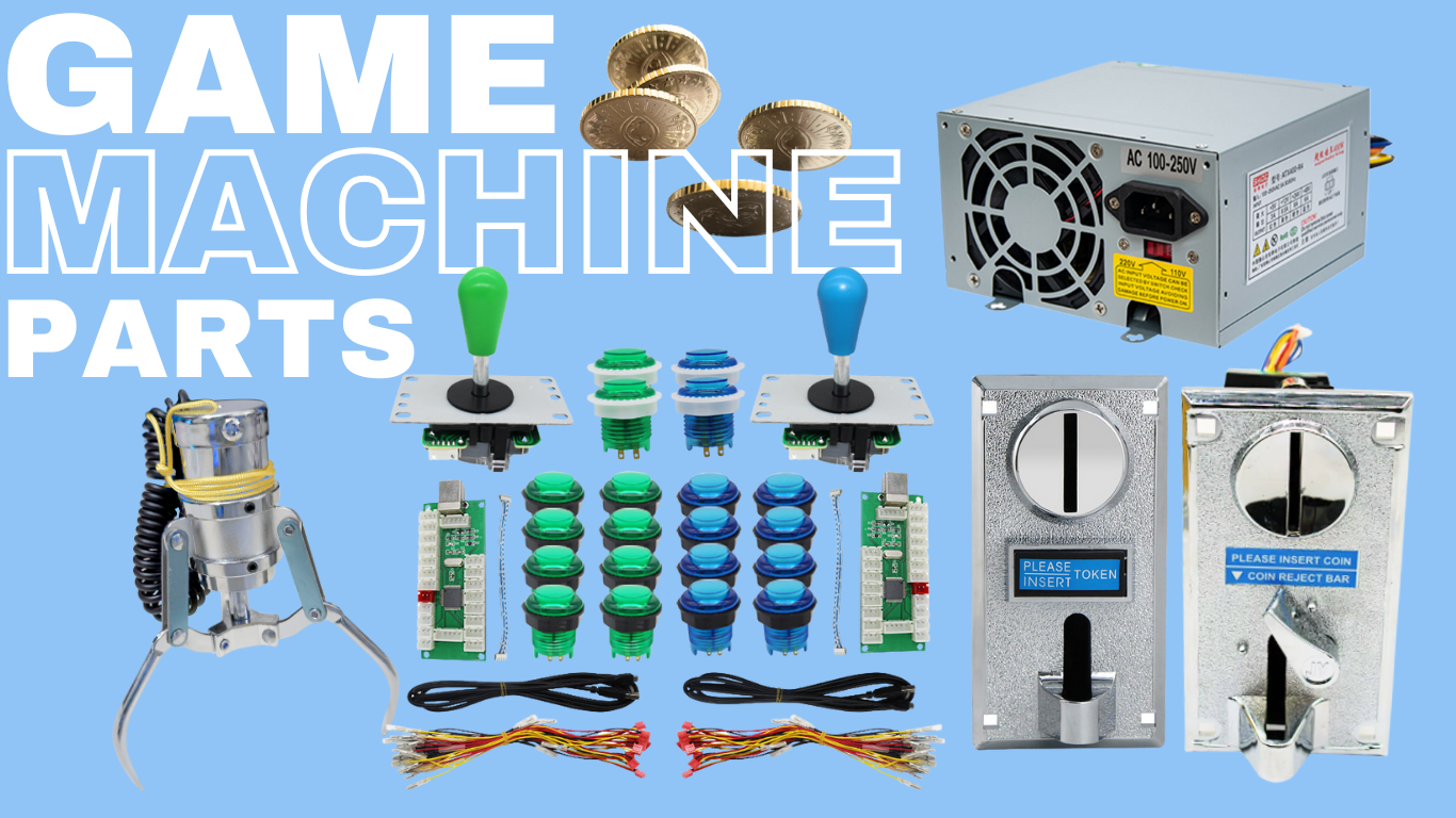 the parts for arcade game machine , such as cam locks, buttons, coin acceptor, power supplies, Token, Children Cartoon redemption tickets, joystick, ect.